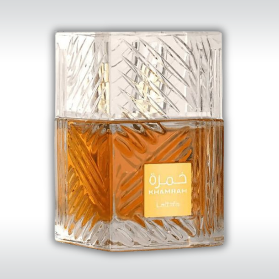 عطر أروماتك - حار للجنسين. عطر جديد Khamrah صدر عام 2022. إفتتاحية العطر القرفة, جوزه الطيب و البرغموت; قلب العطر التمر/البلح, حلوي اللوز, مسك الروم و ماهونيال; قاعدة العطر تتكون من الفانيليا, حبوب التونكا, البنزوين - الجاوي, المر, خشب العنبر و أكيغالاوود.